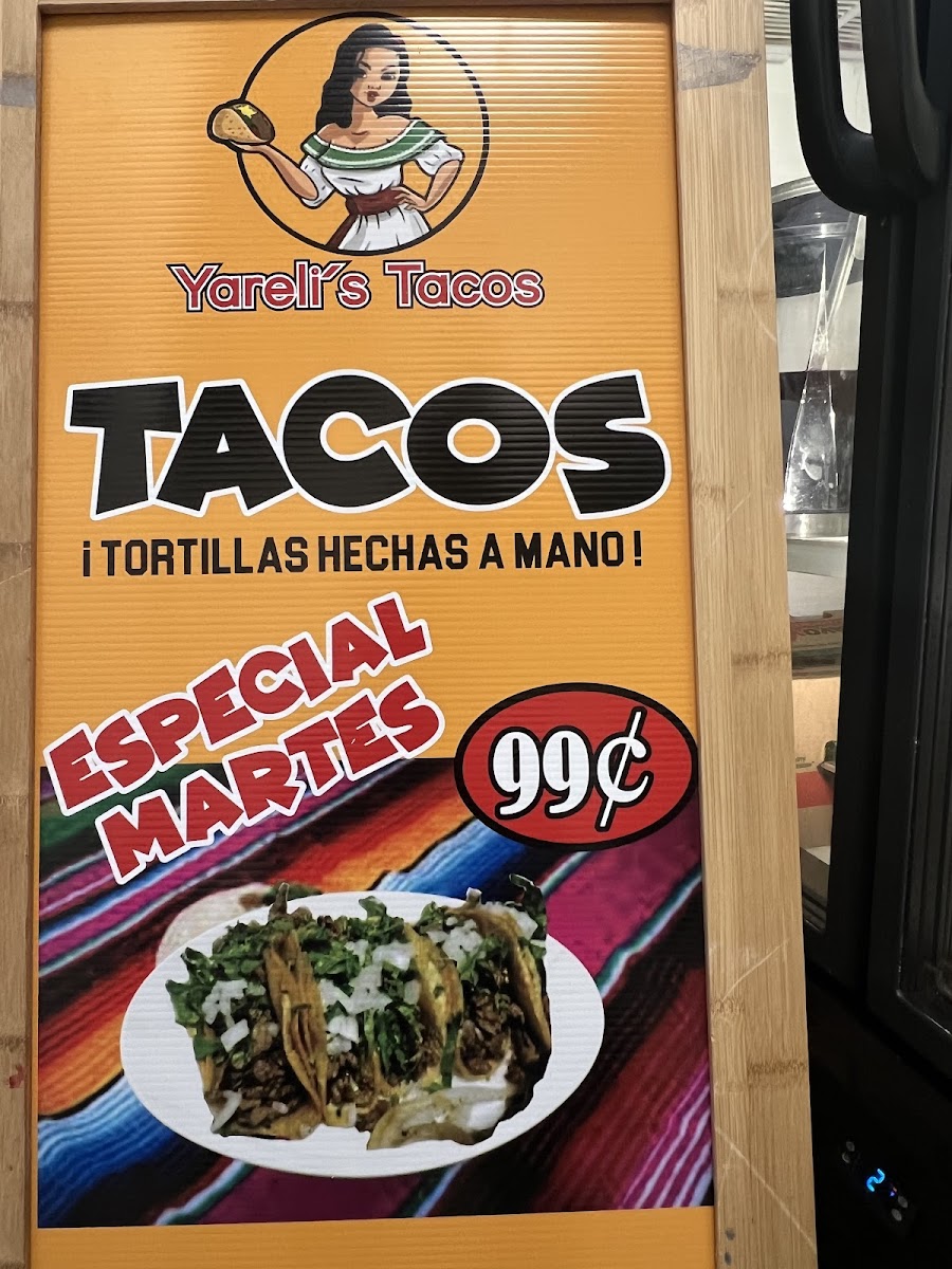 This menu is suitable for quick meals or casual dining, with options that cater to various preferences including savory tacos and light desserts. Customers typically use the menu for fast orders, with items that can be enjoyed on the go or as convenient meal additions.